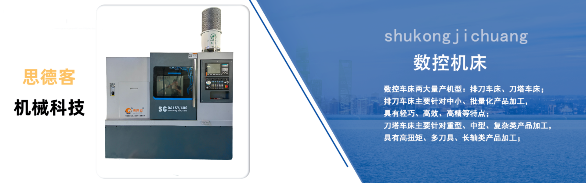 东莞市思德客机械科技有限公司是一家专业从事开发设计、生产製造数控机床的高科技企业,公司融合多家设备生产企业多年的製造经验,不断吸纳国内外同行业的先进科研成果,发展成为今天拥有全新台湾精密龙门导轨磨床、进口双工位卧加、数控镗床、数控龙门、日本叁丰叁次元、英国雷尼绍激光镭射等完善的高端智能装备的全制程生产、装配、检测专业製造商。      思德客CNC加工中心用于各种形状复杂的二、叁维凹凸模型及复杂的型腔和表面,也适用于制造行业的阀类、凸轮、模具、板盘类和箱体类零件的铣、钻、扩、镗、攻等加工工序,更适用于既可用于中小批量多品种加工生产,也可以进入自动线进行批量生产;其具有高刚性、高精度、高速度、高效率、高可靠性、大扭矩等特点;      公司产品有立式加工中心、龙门加工中心机、数控车床系列、钻攻中心系列···